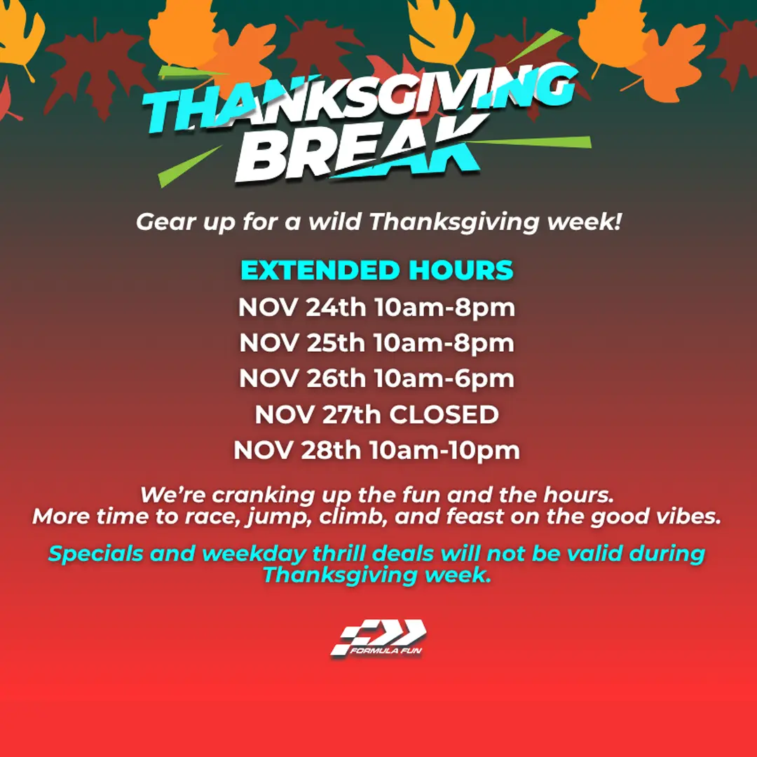 Looking for non-stop thrills, laughter, and excitement for the whole family? Formula Fun Adventure Park is the ultimate destination for adventure seekers of all ages! With an ever-growing list of attractions, there's always something new and exciting waiting for you.